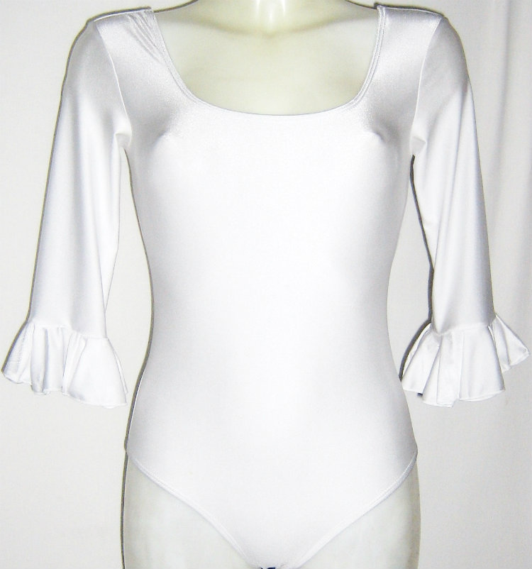BODY MUJER BLANCO MANGA 3/4 EN POLIESTER SPANDEX CON VOLANTE