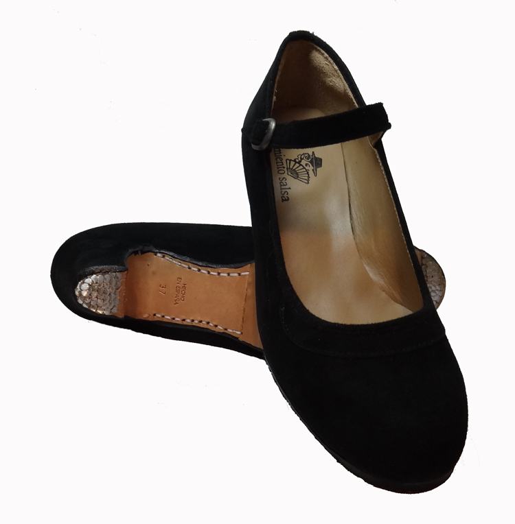 Fabricado en material ante de primera calidad , y cosido a mano .forro de piel y suelas de material de cuero con spays. Clavos en punteras y tacón pulidos, modelo salón con hebilla