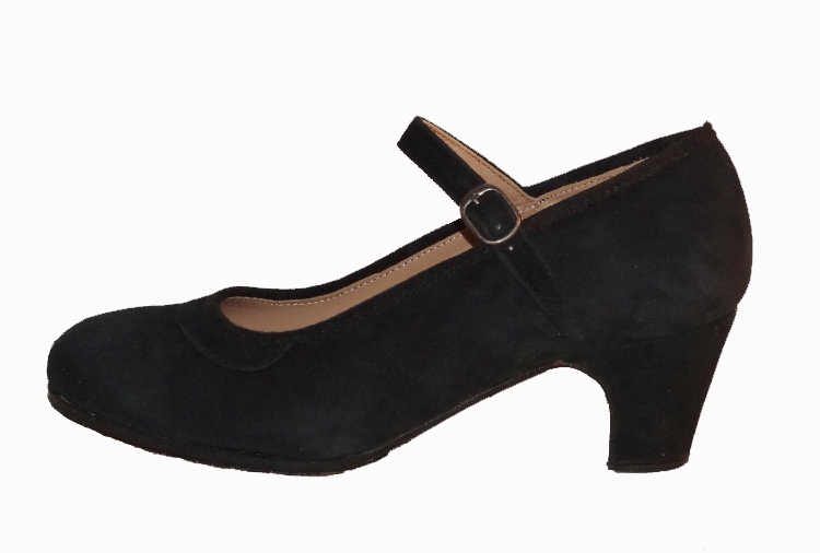ZAPATO DE MUJER PROFESIONALES NEGRO EN ANTE CON HEBILLA COSIDO A MANO